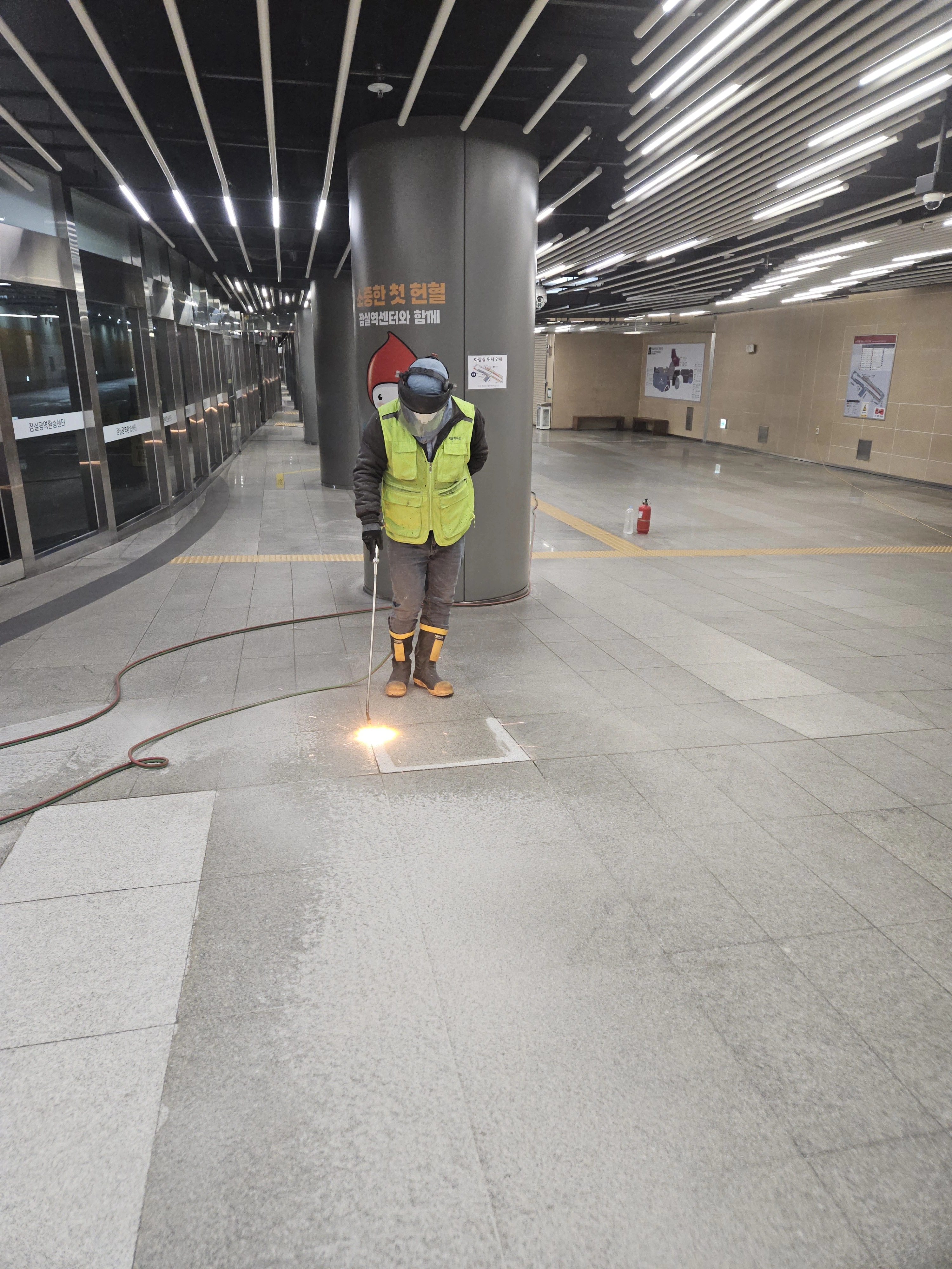 화강석 표면의 오염 상태, 균열 유무, 이전 코팅 잔존 여부를 확인합니다. 표면 상태에 따라 사전 세척·연마 작업이 필요할 수 있으며, 이는 시공 전 현장 방문 시 확인합니다.
